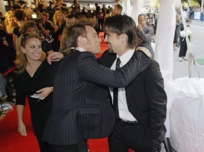 Ewan McGregor and Colin Farrell promote their new movie, Cassandra's Dream at the Toronto International Film Festival. Ewan is so fucking hot. I thought he would hit the wall by now but he's getting hotter every year. Botox? Maybe but who cares. On the other side of the coin Colin looks horrid. I mean, what the hell happened to him? I was never a fan but I knew he wasn't fug but he ran into that wall a million times since Alexander.
