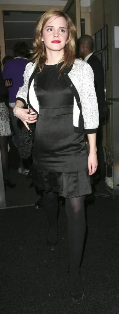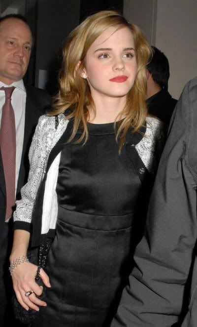 Emma Watson attended a Chanel party at Nobu in London looking cute in a black dress. I love the look but that lipstick needs to go. Did I speak too soon in hoping she wouldn't turn into a party girl? I hope not.